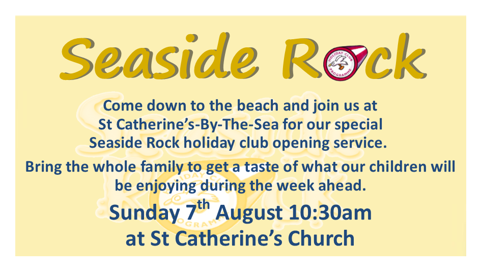 Sunday 7th August is the “Seaside Rock” Holiday Club opening service starting at the later than normal time of 10:30am. Cornwell Community Church will be joining us for this special joint service.