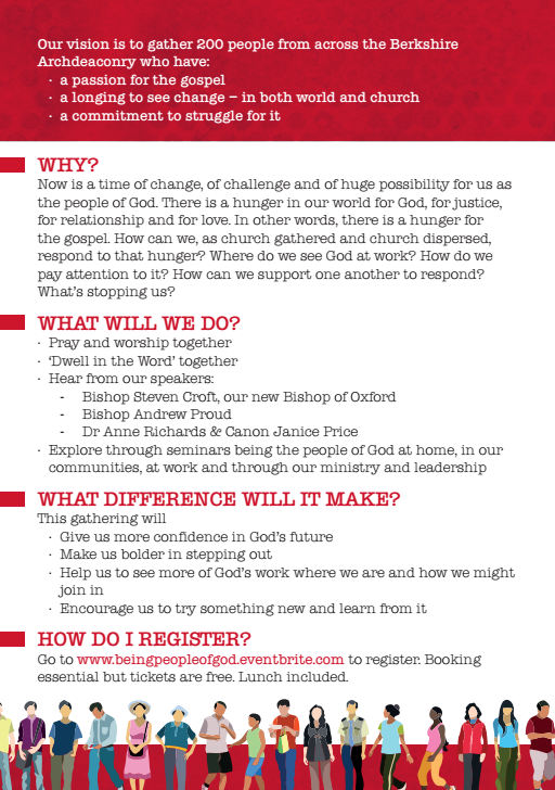 The organisers’ vision is “to gather 200 people from across the Berkshire Archdeaconry who have: