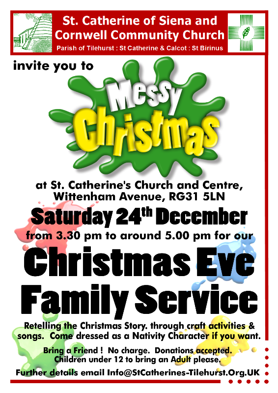 Our Messy Christmas Eve Family Service is on Saturday 24th at 3:30pm. As well as craft and songs, we’ll be retelling the Christmas Story together. We’d encourage the young and young at heart to come dressed as a Nativity character. If you don’t have anything, we can provide something on the day.