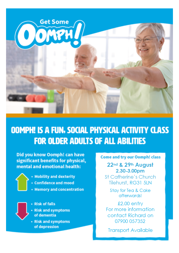 Tuesday 29th August sees the 2nd of our “Oomph” exercise class taster sessions.