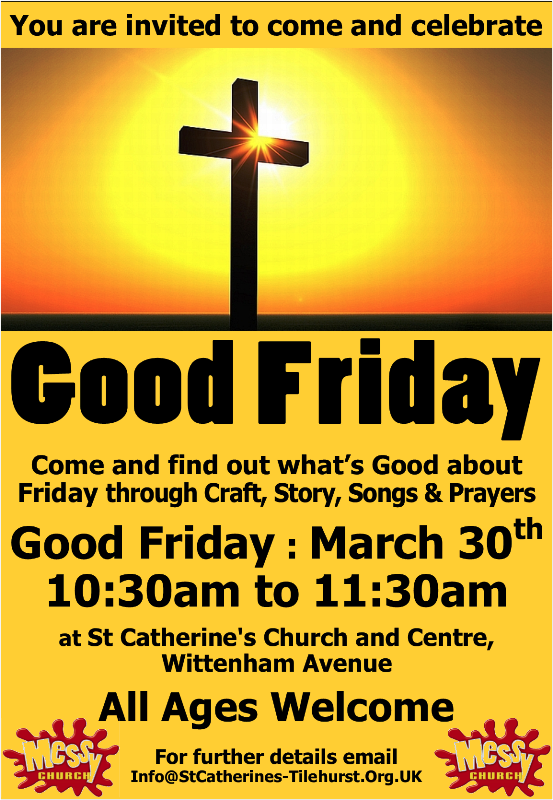 Please join us to celebrate Easter at our all age ‘Messy Style’ service on Good Friday morning.