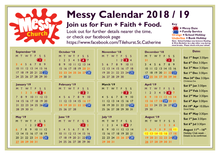Also, below, is our Messy Church calendar for the whole year. Also, look out for details on St Catherine’s new Sunday afternoon Family service coming soon !