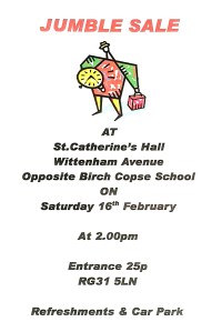 There is a Jumble Sale in St Catherine’s Hall on Saturday 16th February opening at 2:00 pm.
