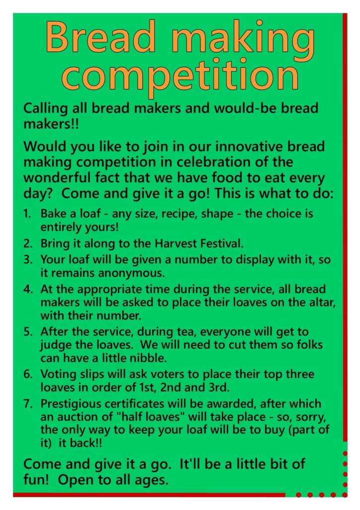 This year we have made it a bit different and are having a (non compulsory!) bread making competition! See the image below for more information. The Brownies are going to be helping us, and we think it is going to be fun.