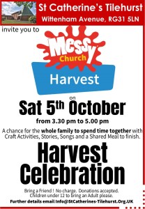 Please join us for our Messy Harvest Celebration this coming Saturday 5th October at 3:30pm.