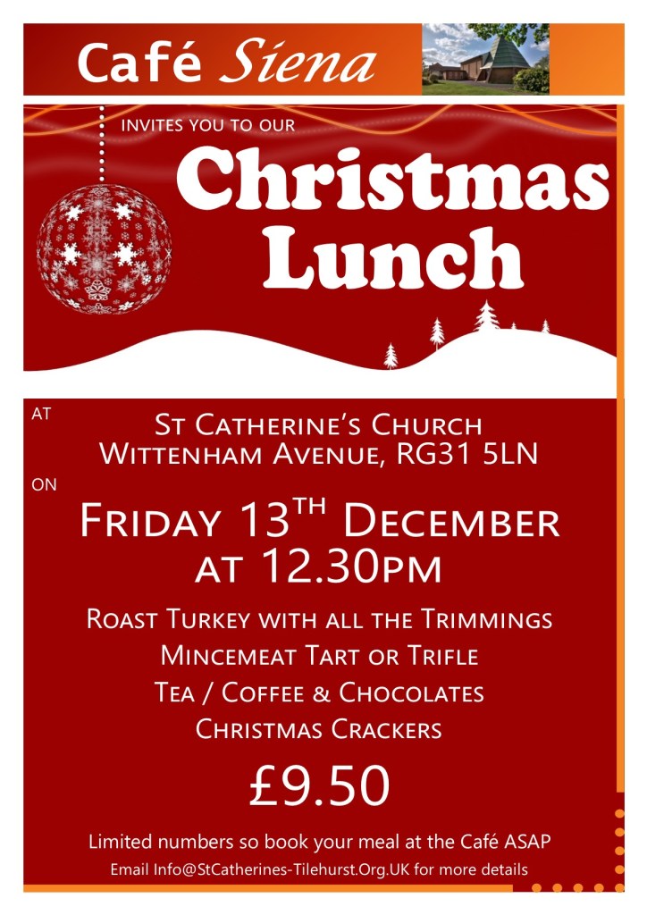 Café Siena – Christmas Lunch Posted byStuart PooreDecember 1, 2019January 1, 2020Posted inCafe Share this: Click to share on Facebook (Opens in new window) Facebook Click to share on WhatsApp (Opens in new window) WhatsApp Click to share on Nextdoor (Opens in new window) Nextdoor Click to email a link to a friend (Opens in new window) Email Related