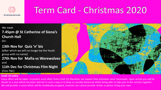 We’re delighted to confirm that our Friday night youth group is back up and running after having to pause during lockdown. It currently does not have a name but we will address that on 13th November.