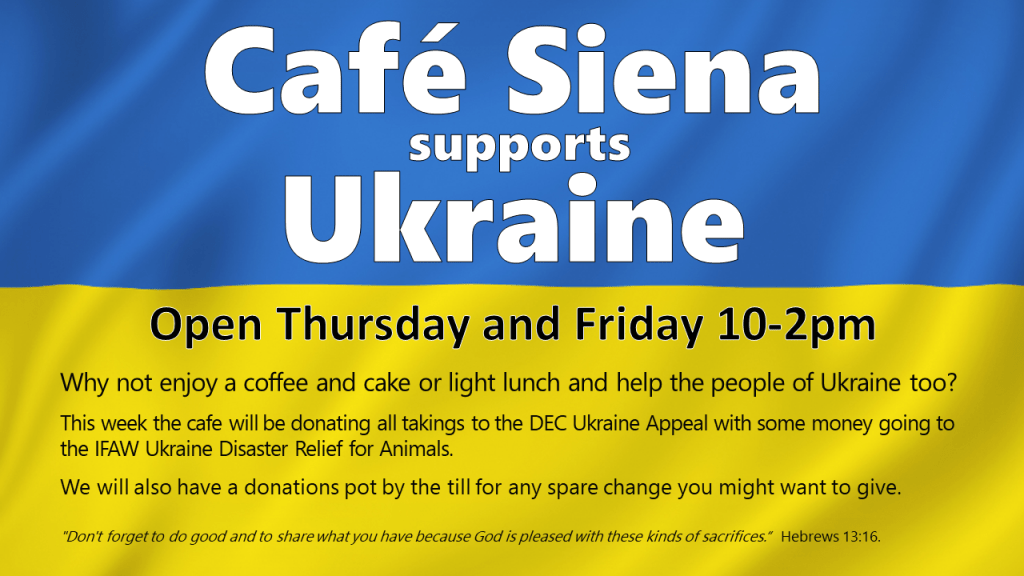 Why not enjoy a coffee and cake or light lunch and help the people of Ukraine too?.