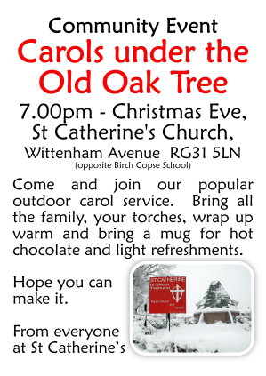 Please join us on Christmas Eve at 7pm under the Old Oak Tree to sing along with our Carols. Bring the family, wrap up warm, amd bring a mug for hot chocolate and light refrshments.