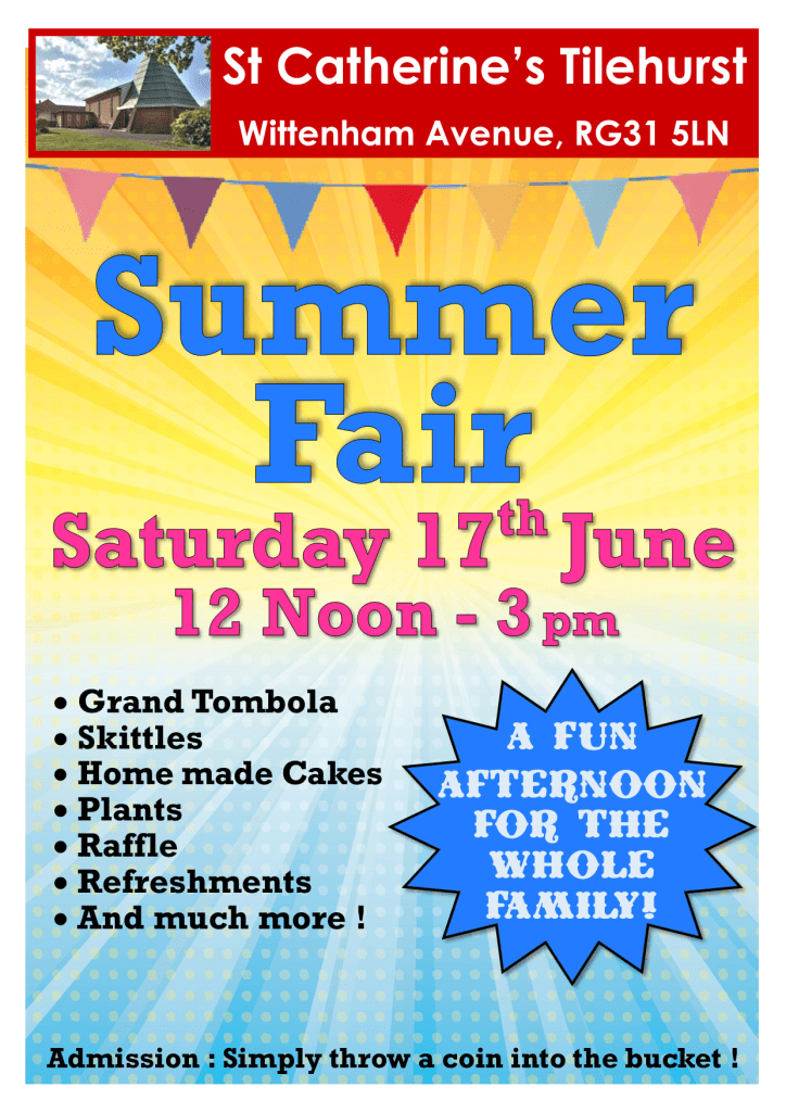 Our 2023 Summer Fair is being held on Saturday 17th June, from 12 noon to 3pm.