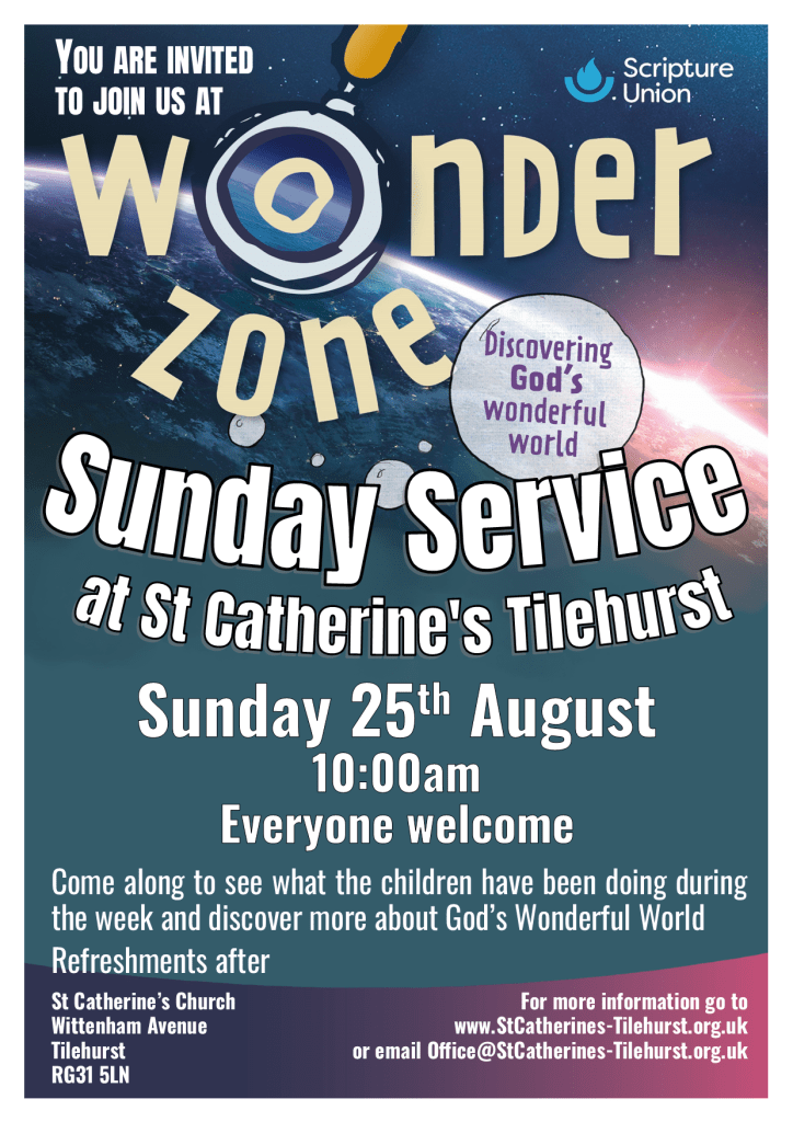 You are invited to join us at our Wonder Zone Sunday Service on Sunday 25th August at 10am.