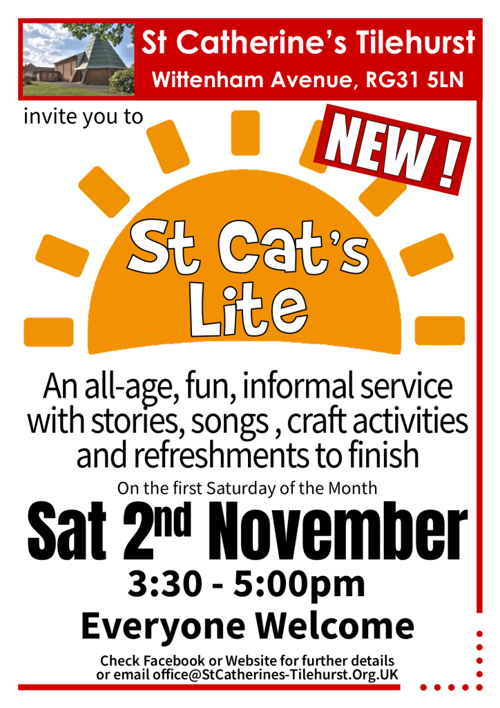 You’re invitied to join us at St Cat’s Lite, an all-age, fun, informal service with stories, songs, craft activities and refreshments to finish.