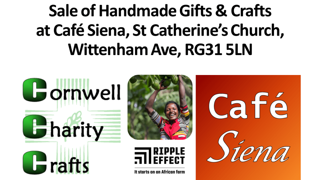 Cornwell Charity Crafts will be selling their homemade craft items in Café Siena on Thursday 14th and Friday 15th November as well as at the Christmas Fair on Saturday 16th.