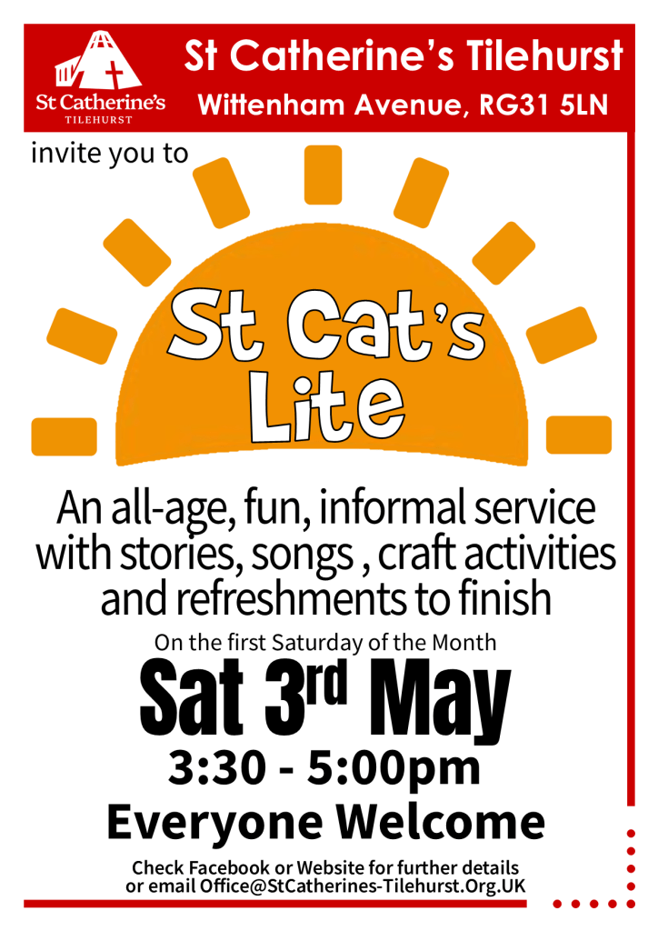 St Cat’s Lite is a fun, informal, all-age service. We start with different craft activities that help us think about the months theme. We continue exploring the theme through songs, stories and prayer. We finish with refreshments. While open to anyone of any age, it’s especially popular with children & families.