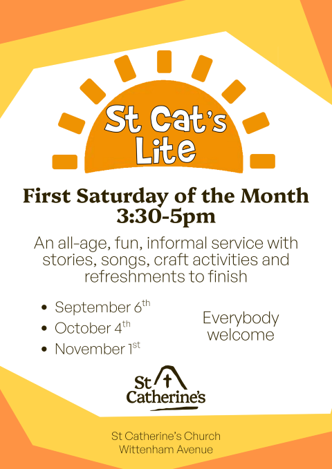 Our next ‘St Cat’s Lite’ service is on Saturday 6th September, starting at 3:30pm. We’ll be meeting outside (weather permitting) and we’ll spend time learning about God and his creation.
