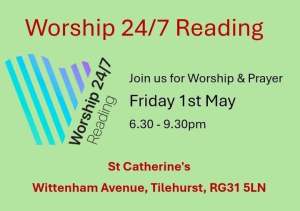 St Catherine’s will be hosting the next evening on Friday the 1st of May – from 6:30pm to 9:30pm. The worship will be led by teams of musicians put together from churches across Reading. The style of worship is often more contemporary. The format is informal. There will be music, worship, creative arts, and prayer in the main sanctuary.
