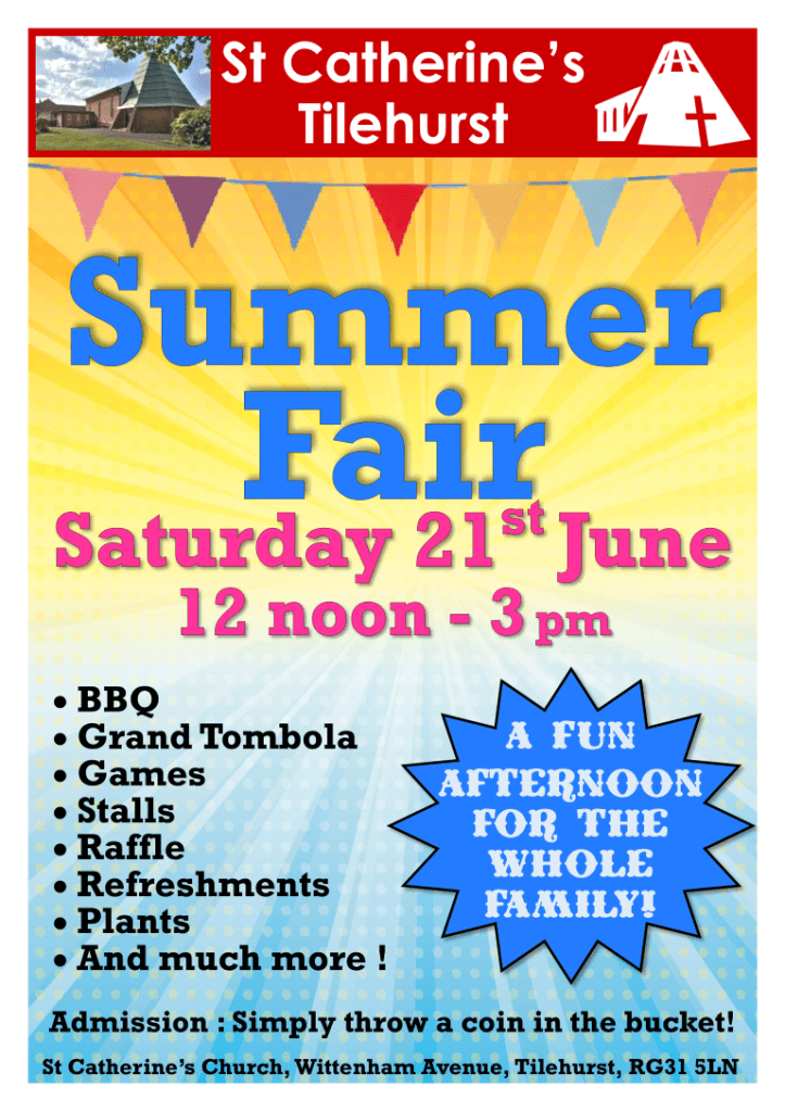 Our Summer Fair is being held on Saturday 21st June, from 12 noon to 3pm.