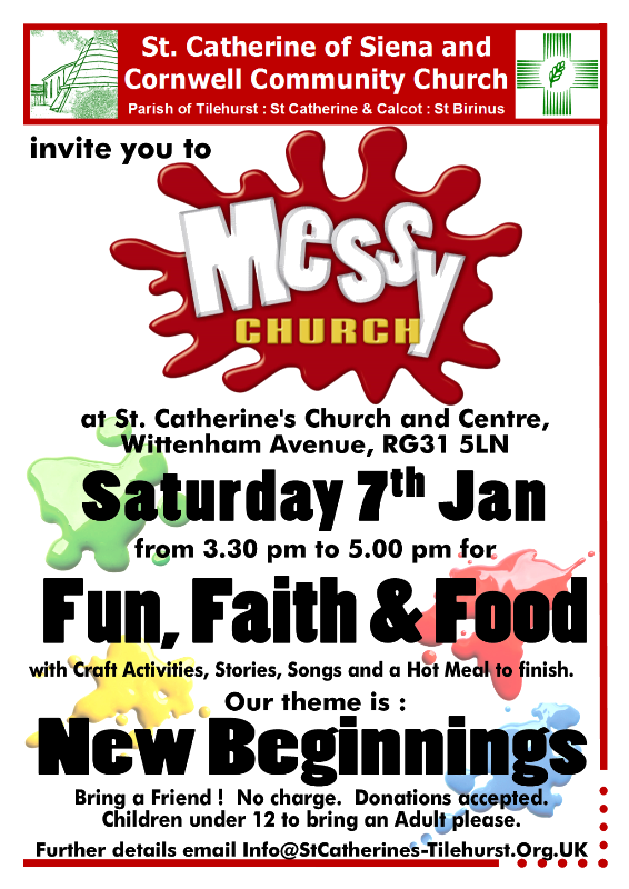 The theme for Messy Church this coming Saturday is “New Beginnings”. The ability to start afresh with God is a central theme of the Christian message. Come with us as we explore that theme together through our normal mix of Fun, Faith and Food.