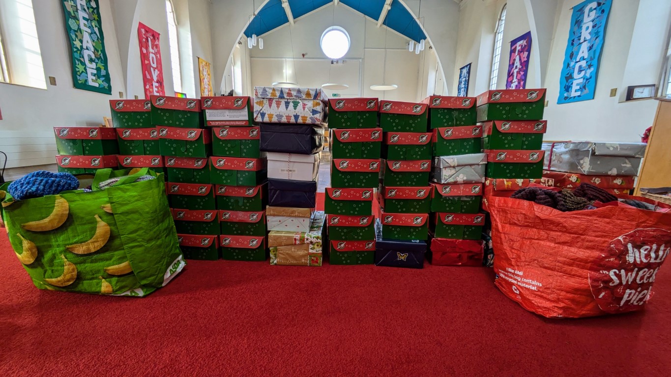 Shoeboxes ready for collection